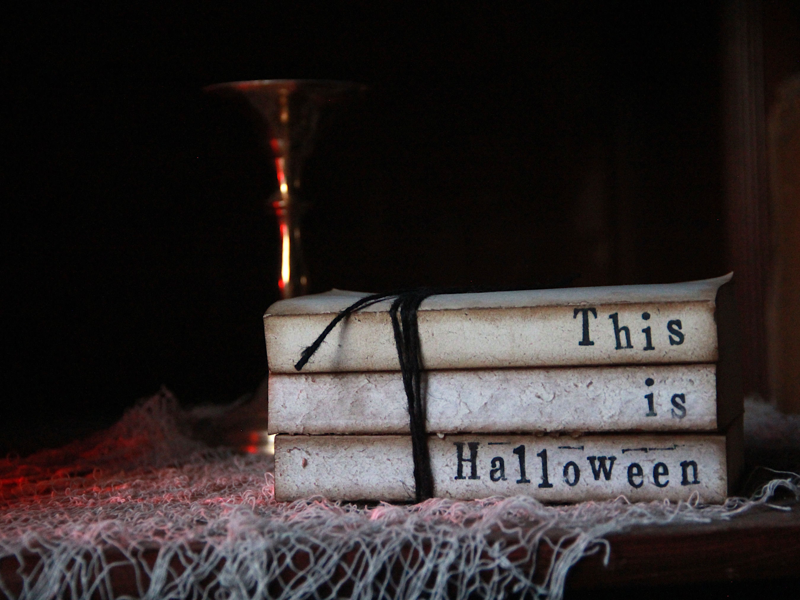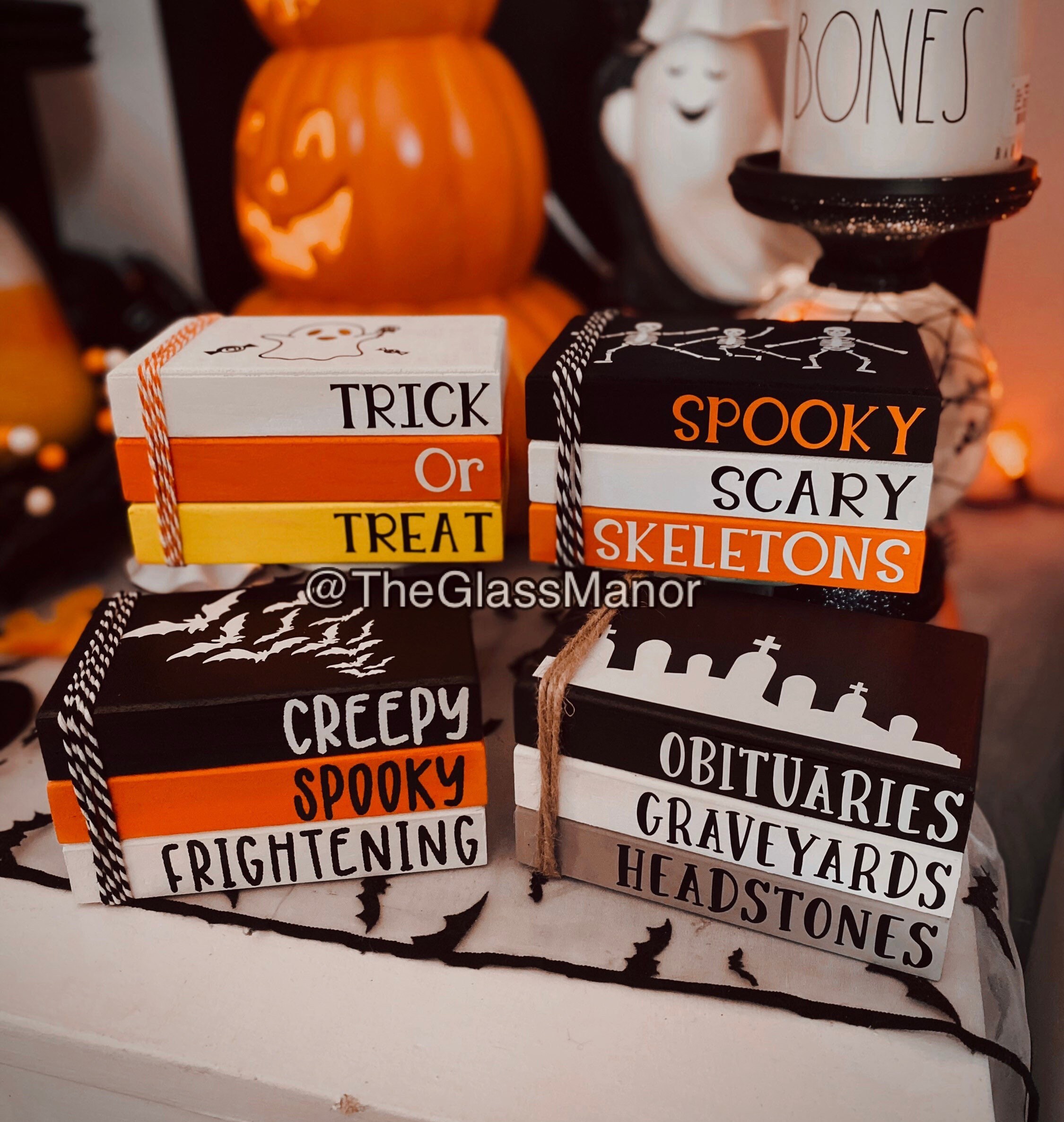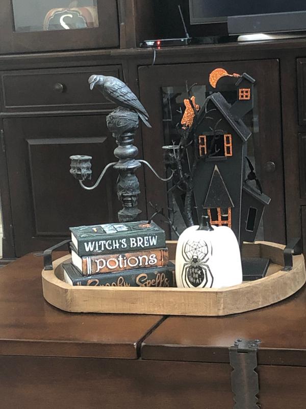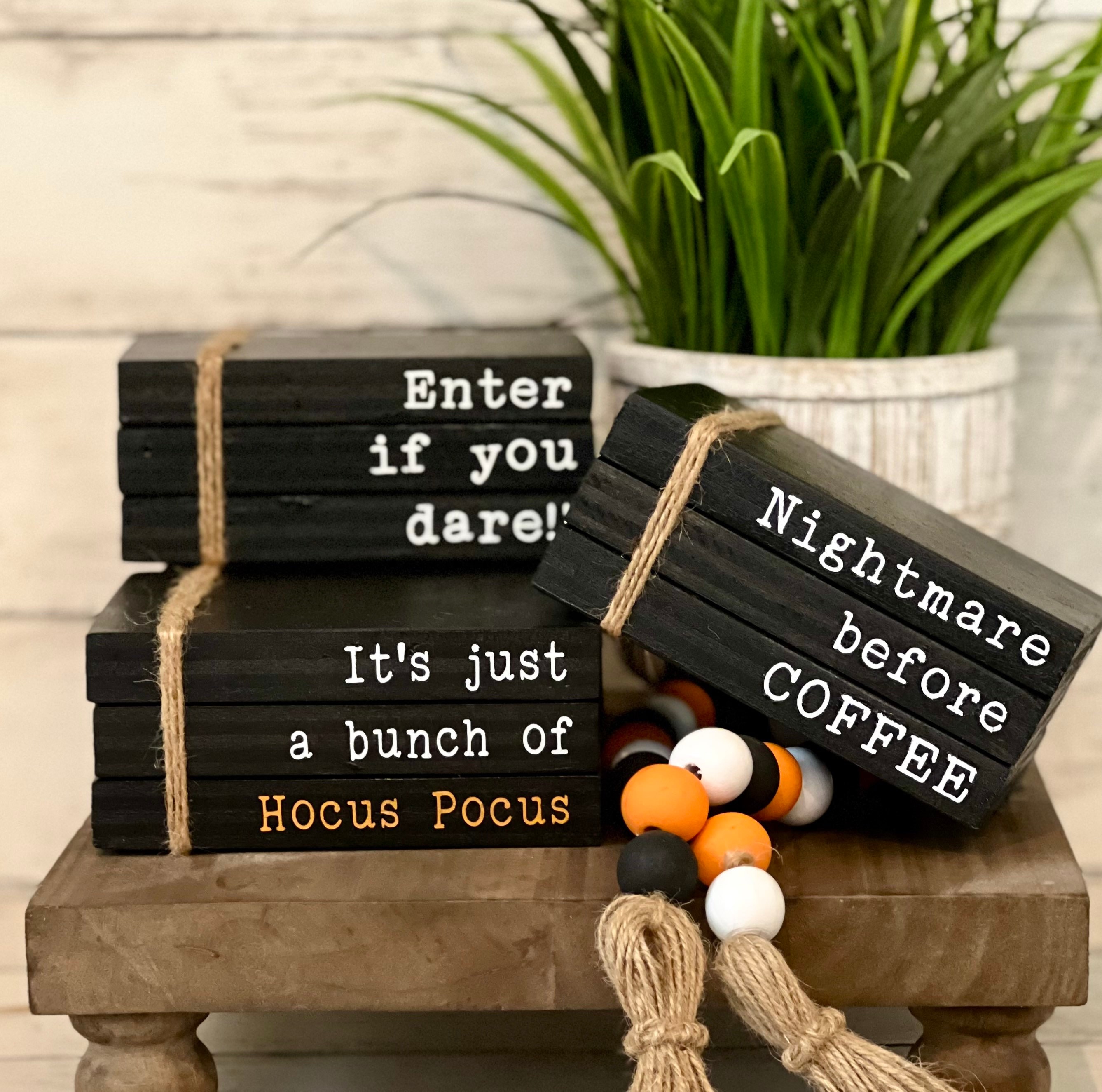 Ad Decor on demand. Halloween decor tiered tray decor Halloween stamp book stack trick or treat decor hocus.