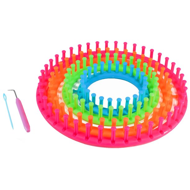 Craft County Plastic Round Knitting Loom Kit Multiple Knitting Hoops Set Includes 4 Looms 1 Yarn Needle 1 Loom Pick And Instructions Pair With Yarn Rope And Cord Walmart Com