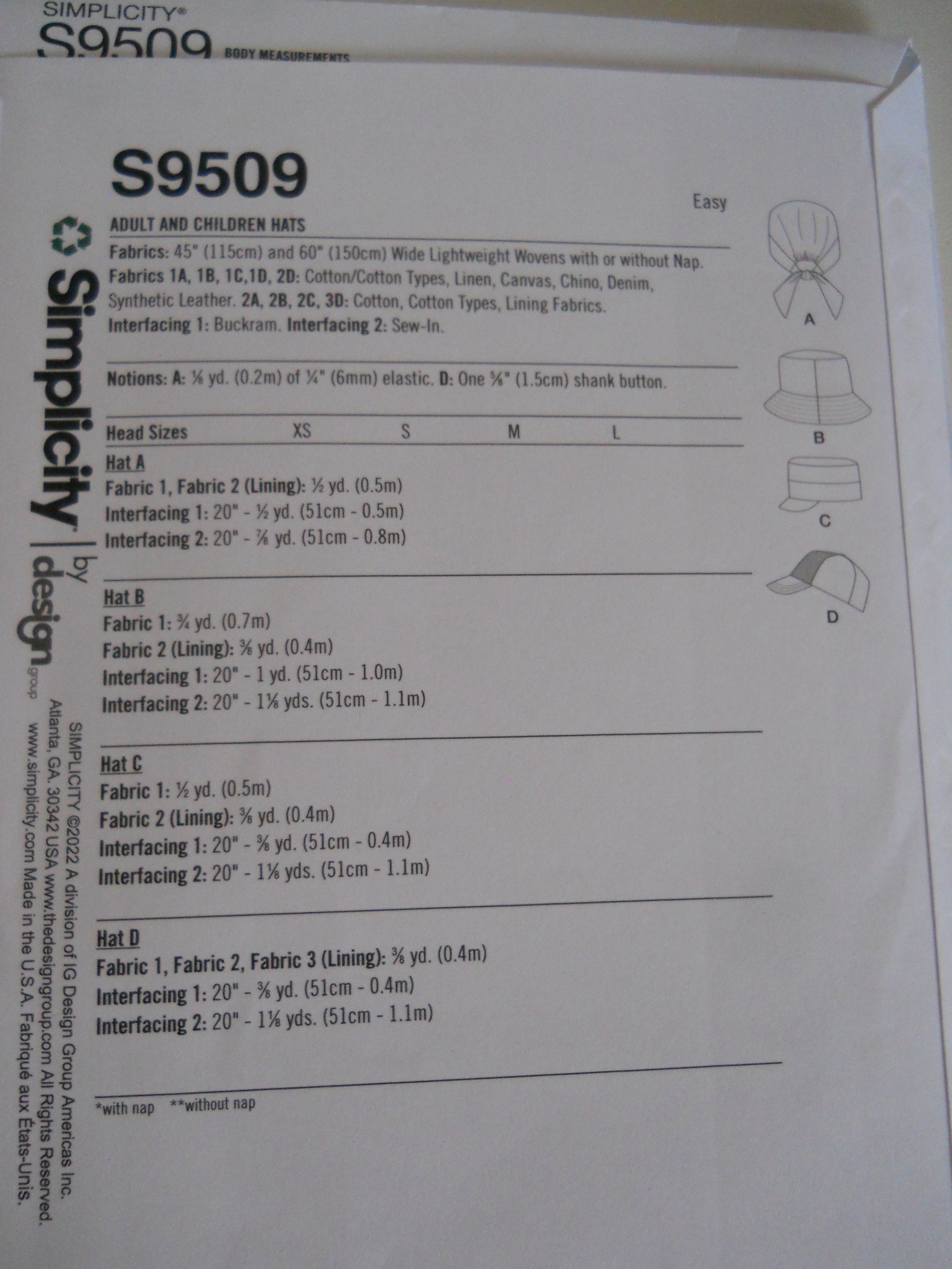 2022 Caps And Hats Simplicity S9509 A Xs S M L New Sewing Etsy