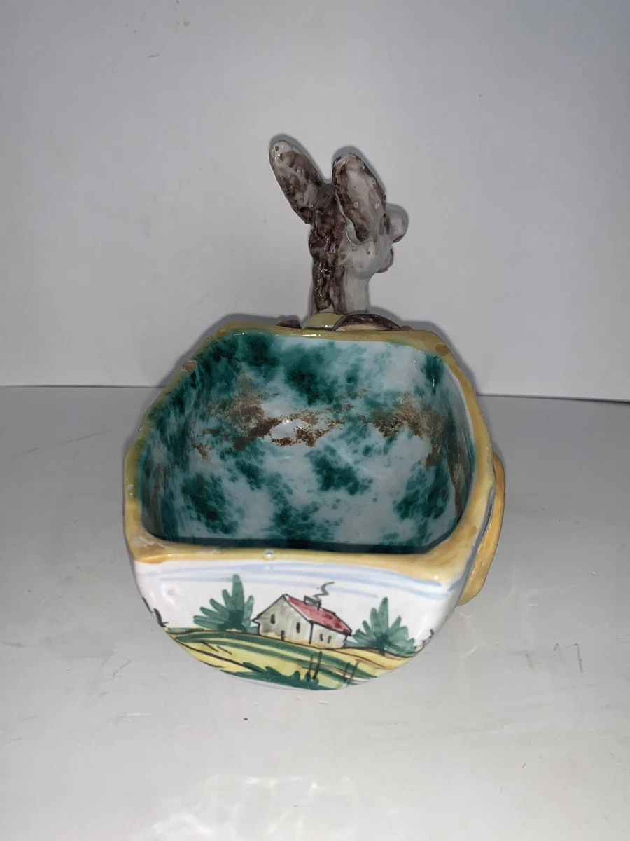 Vintage Italian Art Pottery Donkey And Cart Wagon Planter Hand Painted Ebay