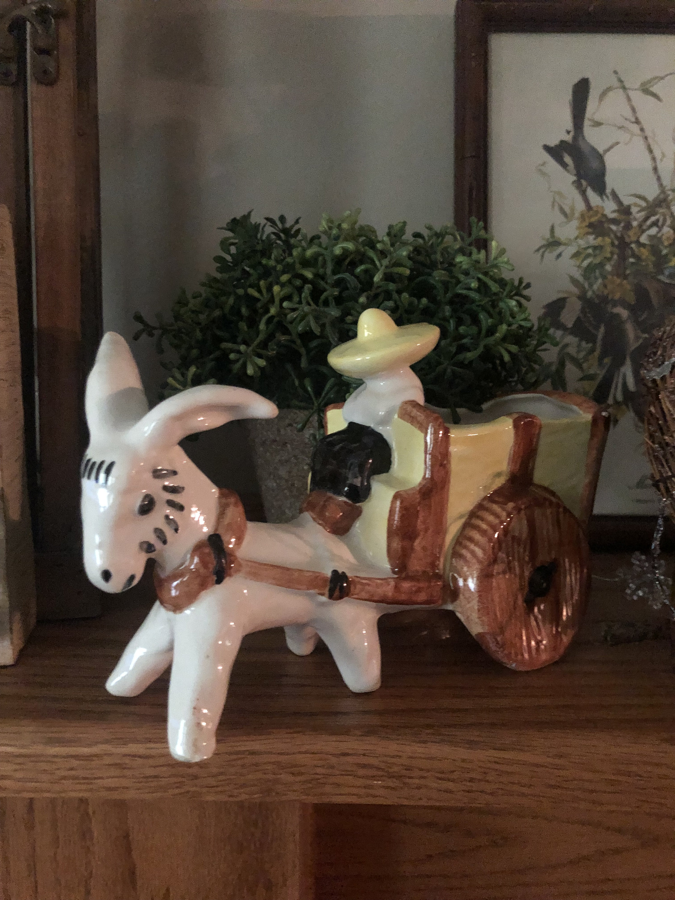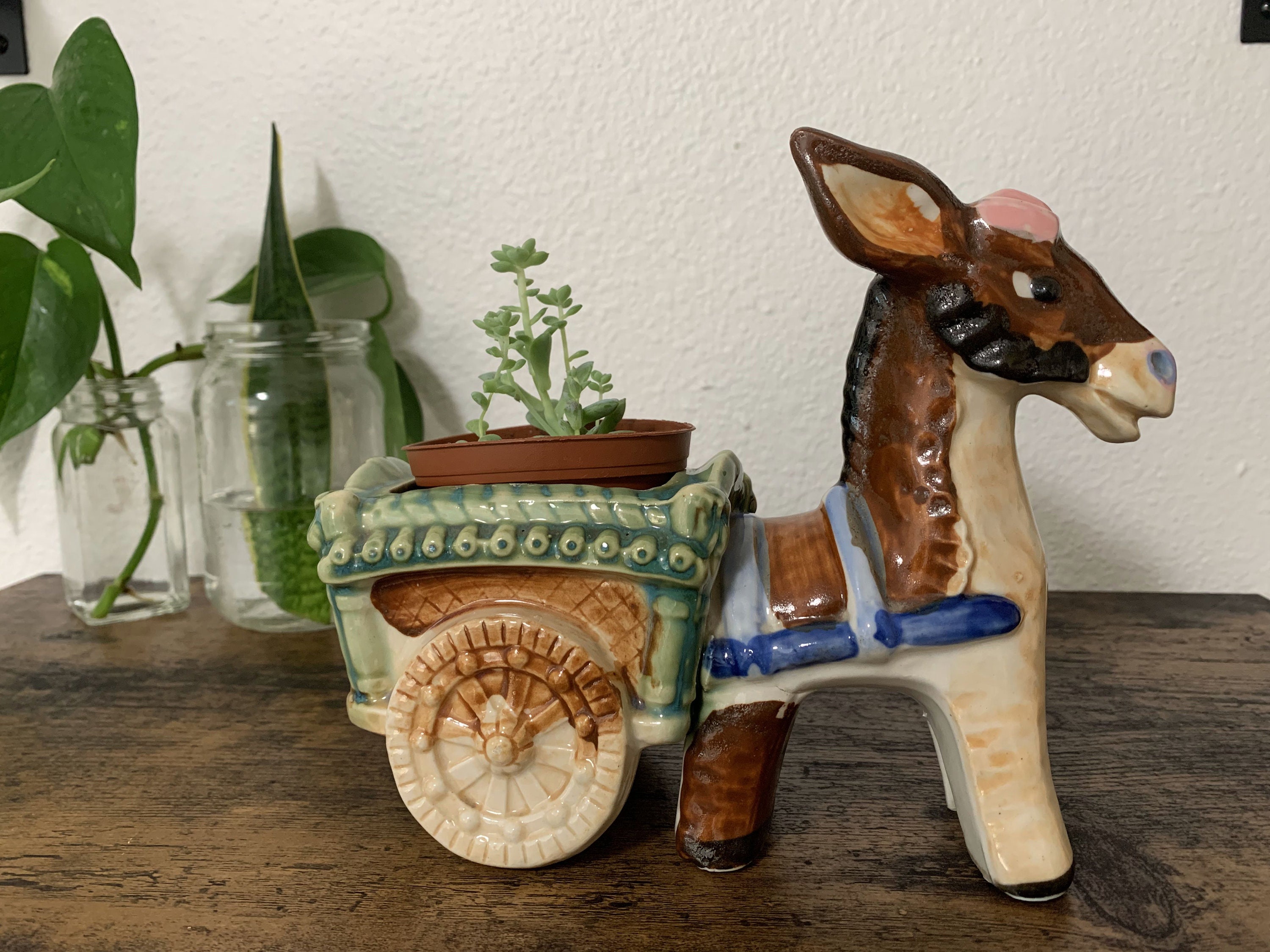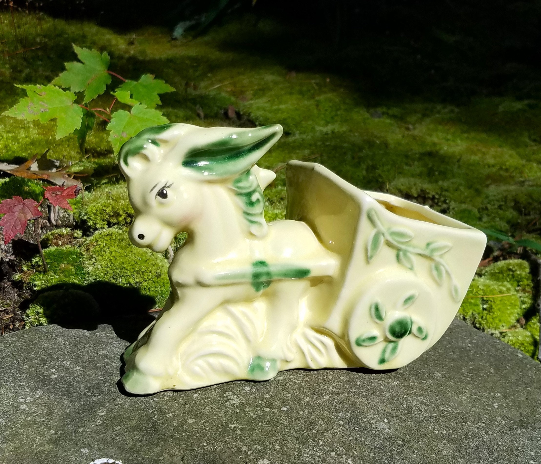 Vintage Ceramic Donkey Pulling Cart Planter Marked Japan 6 5 Inch Ebay