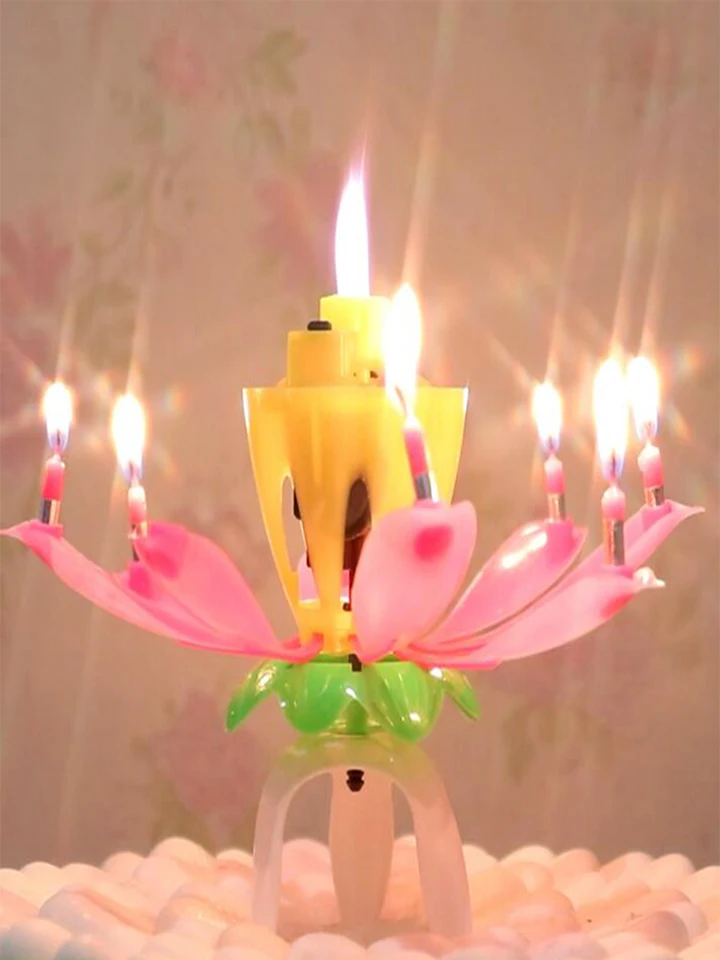 Music Flower Candles Taozoey Rotating Lotus Flower With Music Birthday Candle Birthday Flower Candles Cake Decoration Party Birthday Happiness Colourful Amazon De Home Kitchen